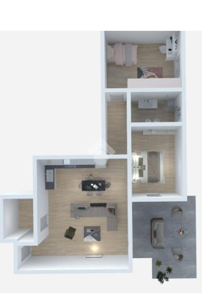 L'appartamento è cosi composto: zona giorno con soggiorno open space avente accesso al loggiato e zona notte costituita da due camere da letto, di cui una matrimoniale, e bagno finestrato.