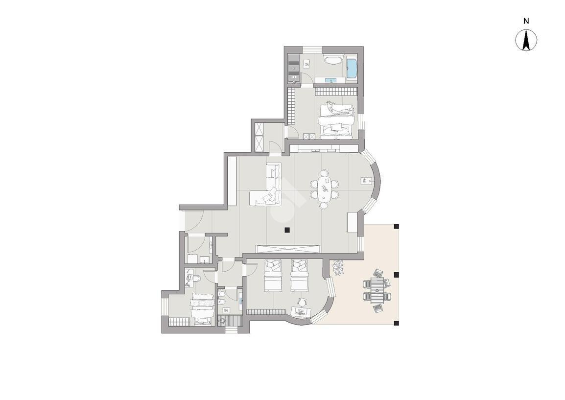 La soluzione viene venduta completa di arredo (ad esclusione degli elettrodomestici) e si distingue per l’accurata attenzione ai dettagli, che la rende unica e ideale per chi desidera spazi eleganti, luminosi e tecnologicamente avanzati, caratterizzati da un’atmosfera esclusiva e distintiva.